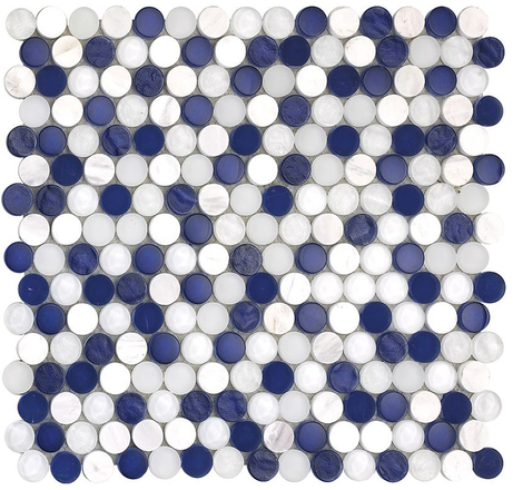 Project Deco SoBe Marine Penny Round Mosaic Tile (12.4"x11.5" Sheet)Mouse over for detail