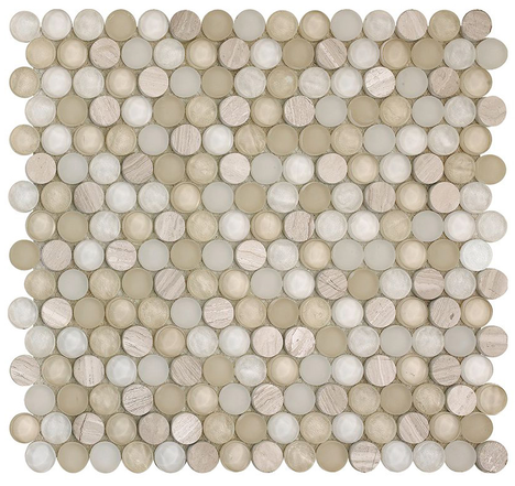 Home : Categories : Mosaic, Glass & Metal Tiles : Happy Floors - Project Deco SOBE Mosaic Tile : Project Deco SoBe Sand Penny Round Mosaic Tile (12.4"x11.5" Sheet)