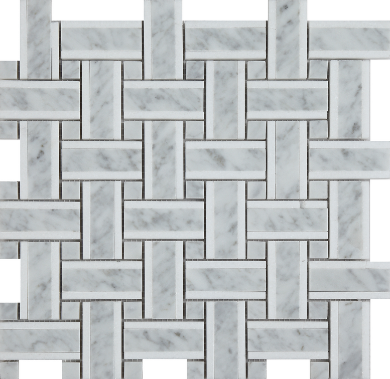 Project Deco Carrara & Thassos (Dark Blend) Basketweave Natural Stone Mosaic (12"x12" Sheet)Mouse over for detail