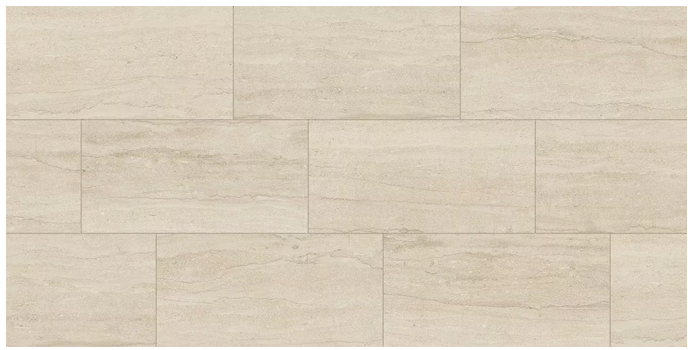 MILEstone's ECOSTONE porcelain tile pays homage to the timeless beauty of travertine with two distinctive surface finishes inspired by different cutting techniques. Cross-Cut, which emphasizes the cloud-like patterns that make this prestigious natural material unique, and Vein-Cut, showing the banding and linear lines of the veining in the natural material.